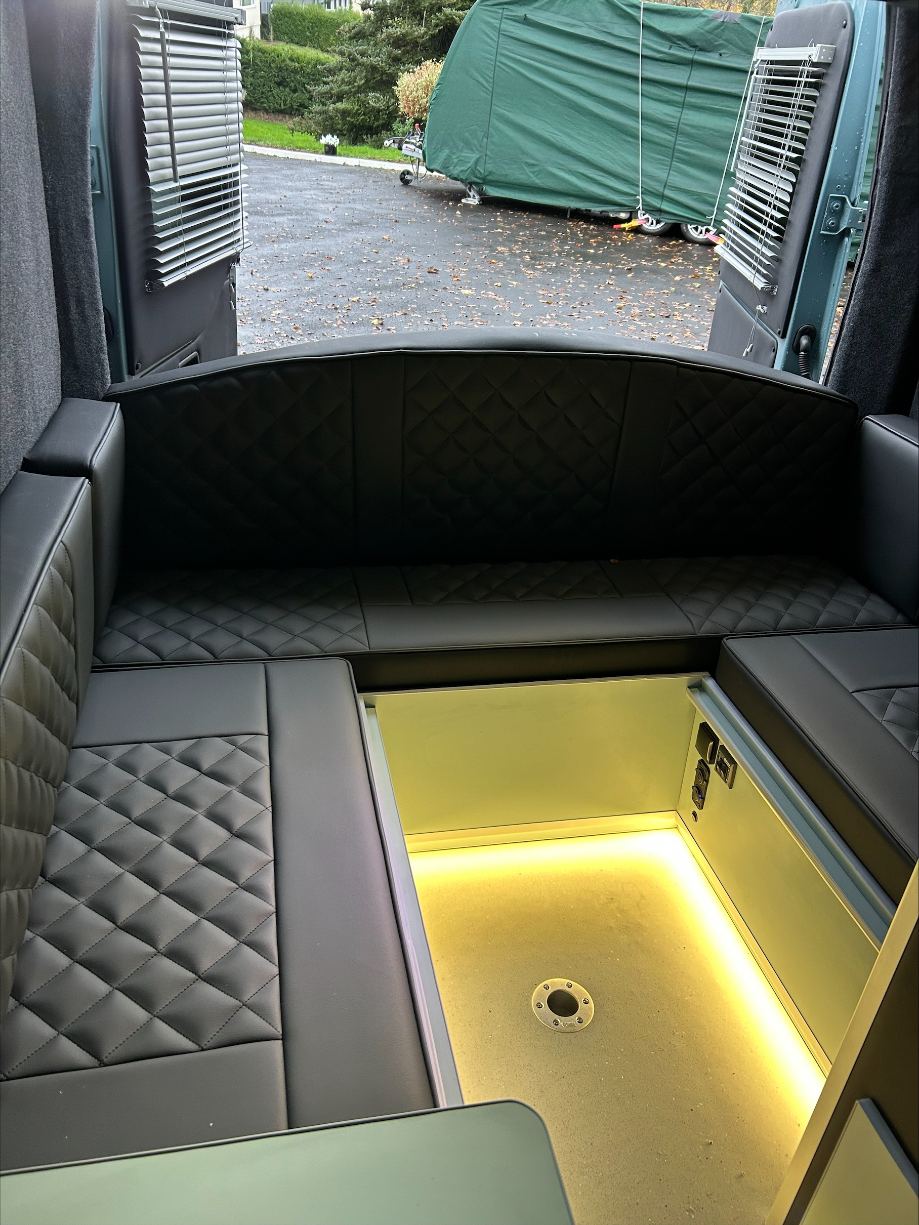 With opposing bench seating, generous storage, and carefully integrated lighting, this conversion is ideal for relaxed touring, social trips, or longer adventures.