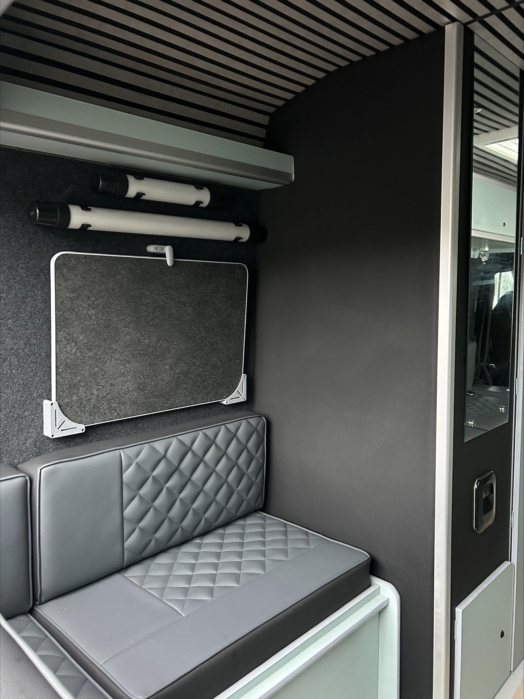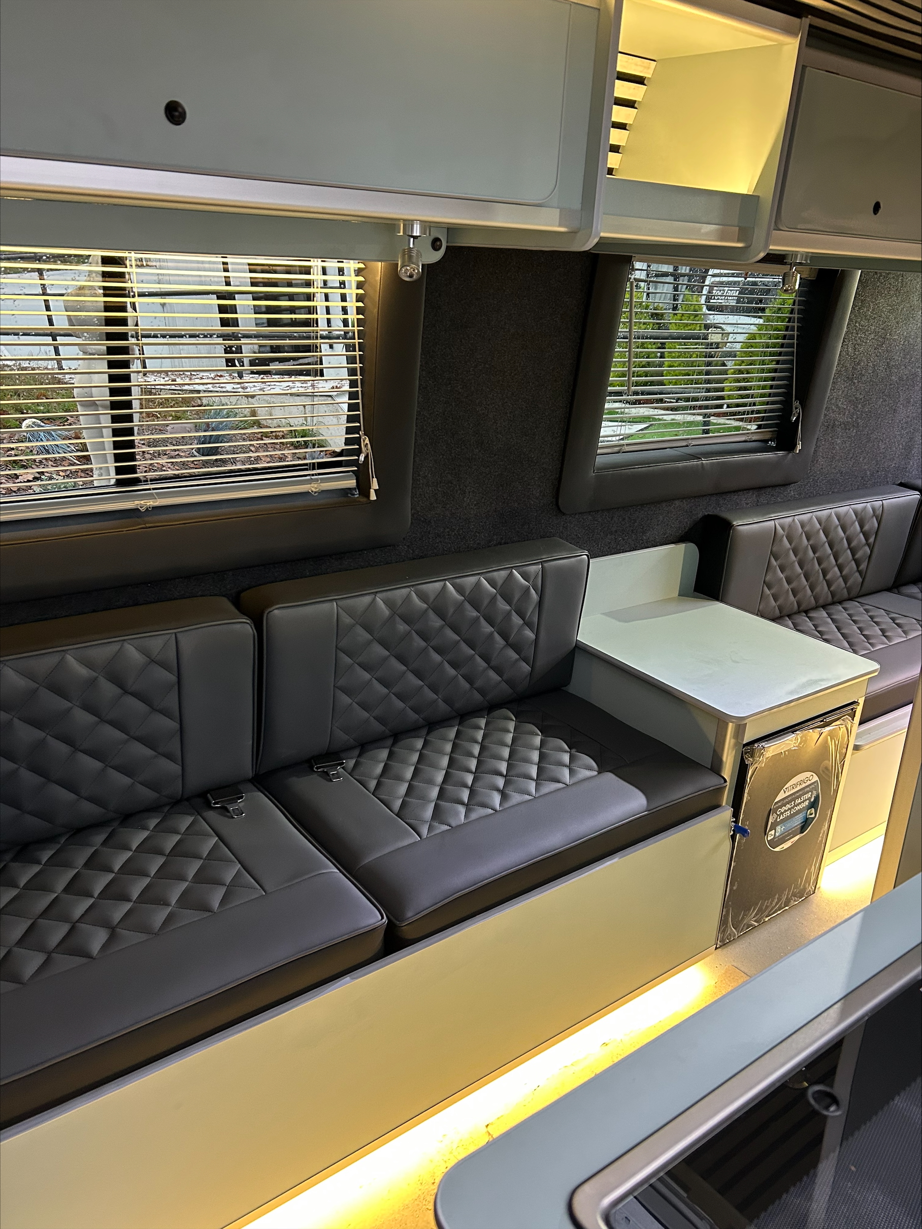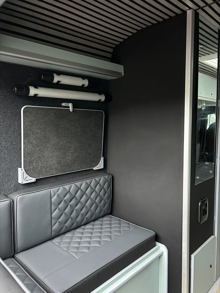 Attention to detail, smart use of space, and a cohesive modern design make this camper conversion stand out. From the upholstery stitching to the ambient lighting, every element has been carefully considered to deliver a high-quality finish that feels both practical and premium.