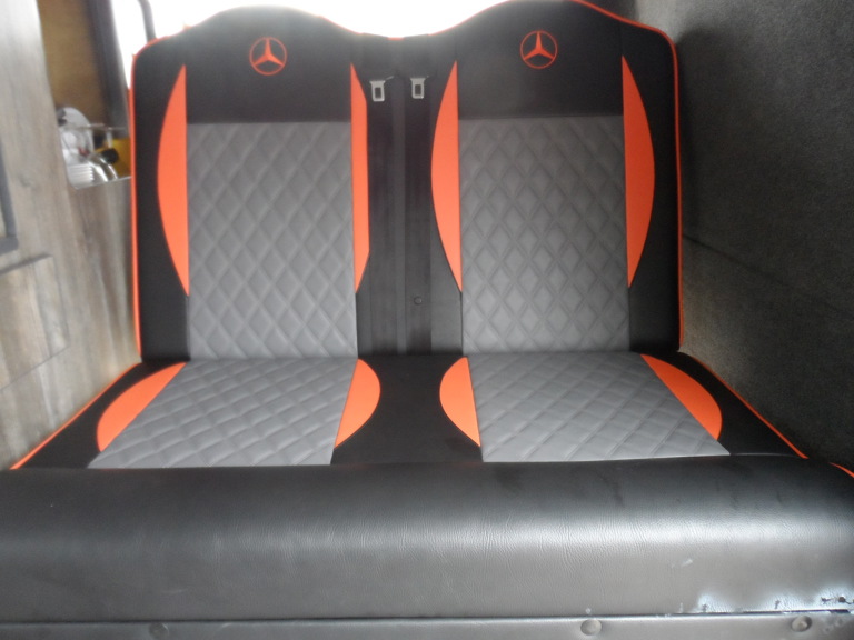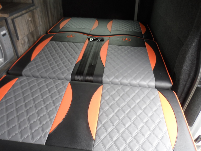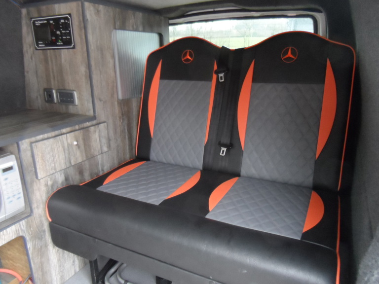 At TOC Trim, we transform Mercedes Vito vans into premium campervans built for comfort, style, and life on the road. Our latest project features a dynamic black, orange, and grey colour scheme with bold diamond stitch detailing—designed to turn heads and go the distance.