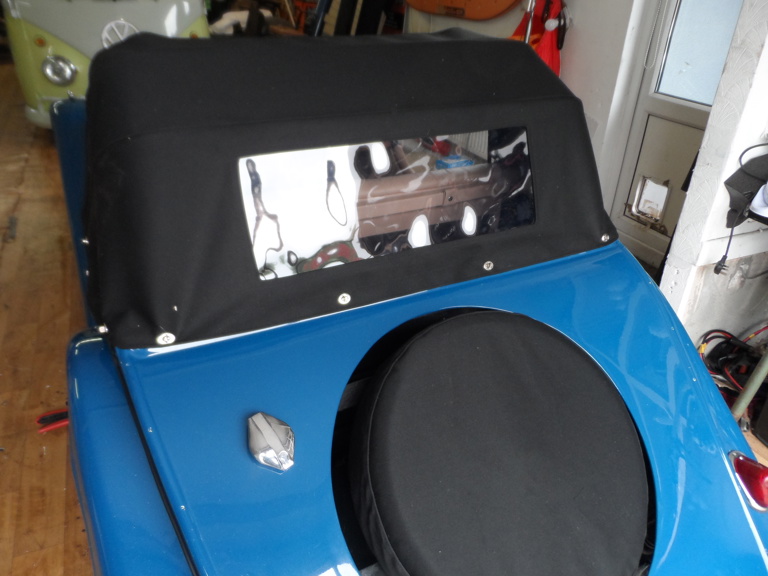 In addition to the roof, we crafted a custom PVC wheel cover to complement the MG’s upgraded look. This durable cover not only adds a stylish finishing touch but also protects the spare wheel from the elements, maintaining its condition for years to come. The combination of black mohair and PVC materials creates a cohesive, eye-catching result that turns heads on the road and preserves the car’s value.