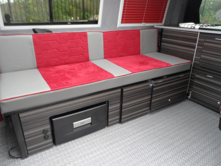 At TOC Trim, we specialise in creating campervan interiors that balance bold design with practical comfort. Our latest VW T5 project features a striking red and grey leather interior, crafted with precision and durable materials—perfect for a van that’s ready to travel as far as you are.