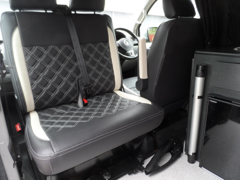 VW T5 Campervan Interior Upgrade: Black Leather with White Stitching